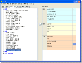 料理名をとなりの献立欄にドラッグ&ドロップするだけで簡単に献立作成できます。さらに、料理の分量も簡単に変更可能(ごはん2杯、0.5杯など)!